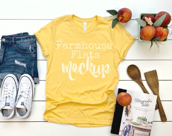 Download T Shirt Mockup Bella Canvas 3001 Heather Yellow Gold Mockup
